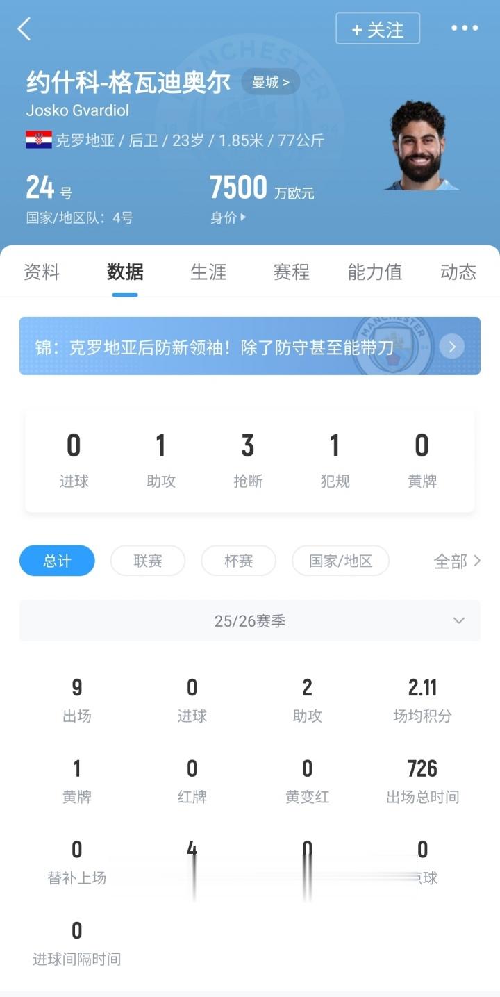 Gvadiol: "Mùa giải trước tôi luôn hy vọng rằng' Bất kể tình trạng của tôi tốt hay xấu, dù cơ thể tôi có bình phục 100% hay không, tôi có niềm tin rằng mình sẽ thi đấu và giúp đỡ đội. Việc tiêu thụ cường độ cao này thực sự đã được phản ánh trong cơ thể tôi, đặc biệt là khi tôi bị chấn thương đầu gối vào mùa hè. Sau nửa năm nghỉ ngơi, cuối cùng tôi đã bình phục. "