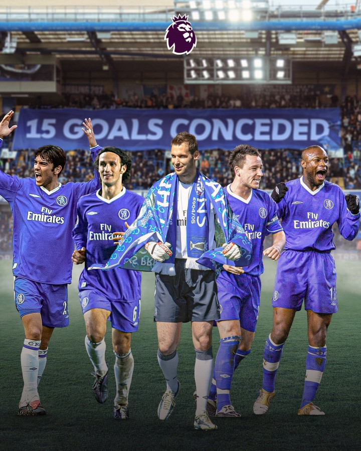 Kỷ lục này xuất hiện vào mùa giải 2004/05. Chelsea đã giành chức vô địch Premier League đầu tiên trong lịch sử đội bóng ở mùa giải đầu tiên Mourinho dẫn dắt, và chỉ để thủng lưới 15 bàn sau 38 vòng đấu. Hiệu suất phòng ngự thật tuyệt vời. Thống kê này vẫn là kỷ lục Premier League về số bàn thua trong một mùa giải.