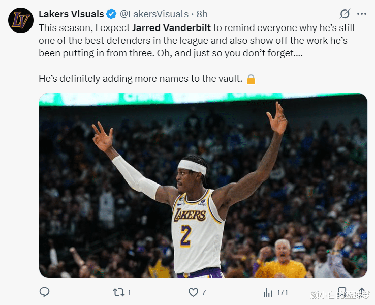 Trên thực tế, Lakers Visuals đã hỗ trợ Vanderbilt tám giờ trước: Mùa này, tôi kỳ vọng Vanderbilt một lần nữa sẽ trở thành một trong những hậu vệ hàng đầu giải đấu và anh ấy sẽ cho thế giới bên ngoài thấy nỗ lực của mình trong khả năng bắn ba điểm. Đừng quên, anh ấy sẽ bổ sung thêm nhiều tên cần khóa vào kho tiền của mình.