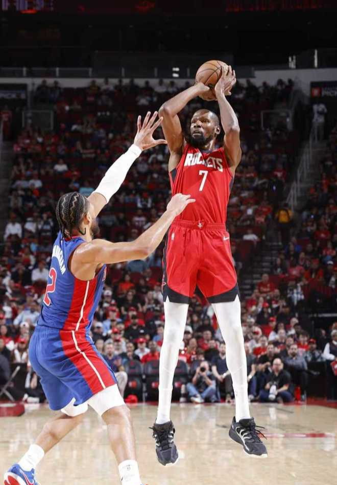 Uduka đã công bố đội hình xuất phát sớm trước trận đấu, sử dụng năm người đứng đầu là Amen + Durant + Smith Jr. + Shen Jing + Adams. Cú đúp mở màn không thể tách rời. Những tiếng còi của trọng tài xuyên suốt trận đấu khiến khả năng tấn công của các cầu thủ rất rời rạc. Rockets không hề có chiến thuật nào trên sân. Ngoại trừ làn sóng tấn công lên cao trào vào cuối hiệp 2, họ gần như chỉ dựa vào các cầu thủ để chiến đấu và thi đấu một mình. Hàng phòng ngự mà đội bóng dựa vào ở mùa giải trước đã bị mất hoàn toàn. Các cầu thủ Pistons thường dễ dàng có được những cơ hội sút xa trên sân.